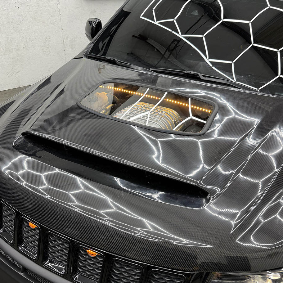 Upgrade your build with 404 Elite Autos’ exclusive Trackhawk custom hoods, engineered for bold style and functional performance. The Demon Trackhawk hood, designed to showcase your supercharged power with a transparent center, this hood is built with premium materials, precision fitment, and the elite craftsmanship that defines 404 Elite Autos. Turn your Trackhawk into a statement of power, presence, and individuality.